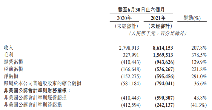 半年報顯示,職工薪酬為7.14億元,較2020年同期的2.25億元同比增長(cháng)217.33%;設計與開(kāi)發(fā)費用達3.46億元,較2020年同期的1.22億元同比增長(cháng)183.61%。