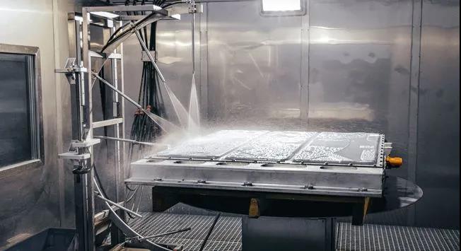這個(gè)試驗是采用不同角度的高壓水或者鹽霧柱對電池包進(jìn)行沖擊,檢驗電池的防水密封性和耐腐蝕能力。