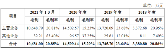 毛利率方面,2018-2020年、2021年1-3月,湖南裕能綜合毛利率分別為20.86%、23.64%、15.29%、20.85%。