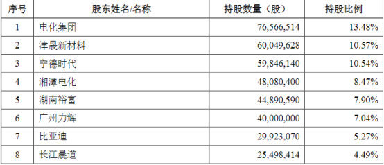 股東方面,2020年12月,湖南裕能增資擴股并引入了主要客戶(hù)寧德時(shí)代、比亞迪作為戰略投資者,目前,寧德時(shí)代、比亞迪直接持有湖南裕能的股份分別為10.54%、5.27%的股權。此外,長(cháng)江晨道為湖南裕能的第八大股東,持股比例約為4.49%,而寧德時(shí)代通過(guò)旗下寧波問(wèn)鼎出資間接參股長(cháng)江晨道。