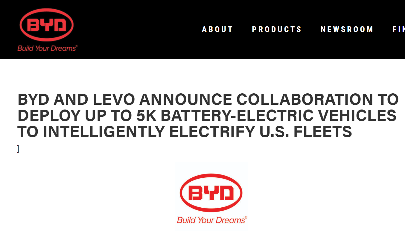 10月6日,筆者從比亞迪北美公司官網(wǎng)獲悉,比亞迪與美國公司Levo Mobility宣布合作計劃,將整合Nuveve Holding的車(chē)輛到電網(wǎng)(V2G)技術(shù)與比亞迪的電池電動(dòng)汽車(chē)(BEV)技術(shù),并計劃未來(lái)五年聯(lián)合部署多達5000輛電池電動(dòng)汽車(chē)。