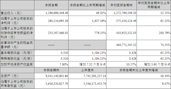 10月14日晚,永太科技發(fā)布三季報報告,公司前三季度營(yíng)業(yè)收入32.73億元,同比增加32.25%,歸屬于上市公司股東的凈利潤3.75億元,同比增加65.25%;扣非凈利潤4.11億元,同比增長(cháng)200.79%。