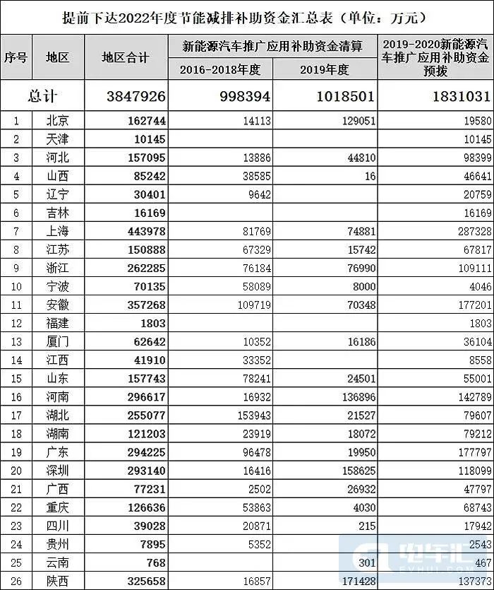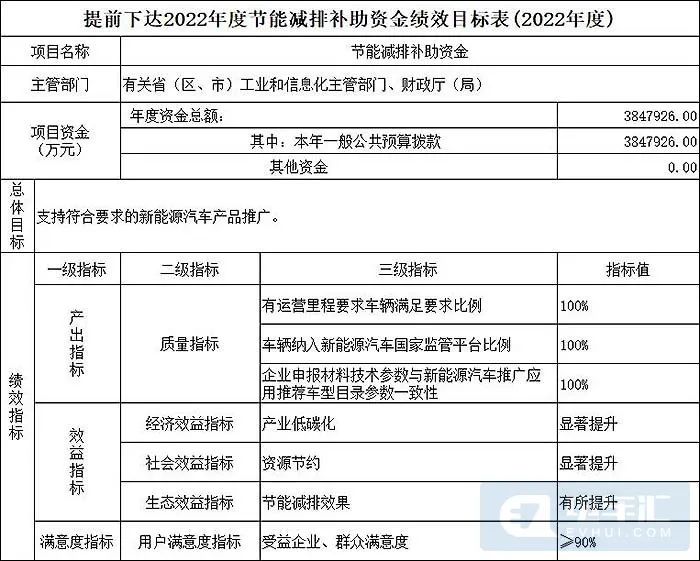 根據《關(guān)于2016-2020年新能源汽車(chē)推廣應用財政支持政策的通知》(財建〔2015〕134號)、《關(guān)于“十三五”新能源汽車(chē)充電基礎設施獎勵政策及加強新能源汽車(chē)推廣應用的通知》(財建〔2016〕7號)、《關(guān)于調整新能源汽車(chē)推廣應用財政補貼政策的通知》(財建〔2016〕958號)、《關(guān)于調整完善新能源汽車(chē)推廣應用財政補貼政策的通知》(財建〔2018〕18號)、《關(guān)于進(jìn)一步完善新能源汽車(chē)推廣應用財政補貼政策的通知》(財建〔2019〕138號)、《關(guān)于完善新能源汽車(chē)推廣應用財政補貼政策的通知》(財建〔2020〕86號)等文件規定,現提前下達你。▍^、市)2022年度節能減排補助資金(詳見(jiàn)附件),用于2016-2019年度新能源汽車(chē)推廣應用補助資金清算和2019-2020年度新能源汽車(chē)推廣應用補助資金預撥。