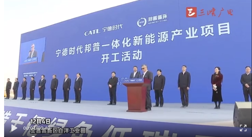 12月4日,寧德時(shí)代邦普一體化新能源產(chǎn)業(yè)項目開(kāi)工儀式在宜昌高新區白洋工業(yè)園正式舉行。湖北省委副書(shū)記、省長(cháng)王忠林出席并宣布項目開(kāi)工,宜昌市委書(shū)記王立,寧德時(shí)代聯(lián)合創(chuàng )始人、副董事長(cháng)李平,邦普循環(huán)董事長(cháng)、總裁李長(cháng)東出席并致辭。