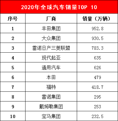 排名第三至第十的車(chē)企分別是雷諾日產(chǎn)三菱聯(lián)盟、現代起亞、通用汽車(chē)、本田、福特、雷諾集團、戴姆勒集團、寶馬集團。