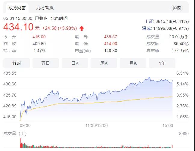 今日開(kāi)盤(pán)兩市漲跌不一,創(chuàng )業(yè)板指高舉高打,5月31日,寧德時(shí)代盤(pán)中總市值一度突破1萬(wàn)億元,成為創(chuàng )業(yè)板首家萬(wàn)億市值公司。