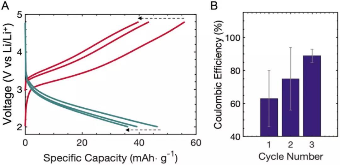 圖1. LMO|LLZO|Li電池的初始充放電曲線(xiàn)和循環(huán)庫倫效率