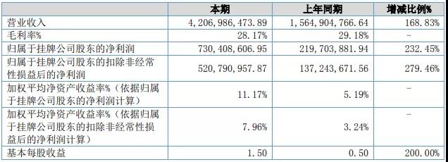 8月24日晚間,貝特瑞(835185)發(fā)布2021年半年報,公司上半年實(shí)現實(shí)現營(yíng)業(yè)收入42.07億元,同比上漲168.83%。其中,負極材料銷(xiāo)量61,856噸,實(shí)現營(yíng)業(yè)收入23.93億元,銷(xiāo)量與收入分別同比增長(cháng)131.46%、98.54%;正極材料銷(xiāo)量20,000噸,實(shí)現營(yíng)業(yè)收入15.87億元,銷(xiāo)量與收入分別同比增長(cháng)327.35%、565.78%。公司實(shí)現利潤總額和凈利潤分別為9.41億元和7.54億元,同比分別增長(cháng)244.84%和237.77%,實(shí)現歸母凈利潤7.3億元,同比增長(cháng)232.45%。