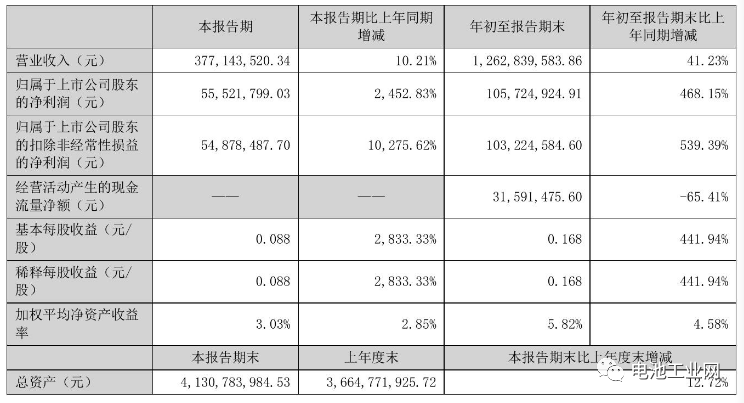 10月21日,湘潭電化公布2021年第三季度報告,公司前三季度實(shí)現營(yíng)業(yè)收入12.63億元,同比增長(cháng)41.23%;歸屬于上市公司股東的凈利潤1.06億元,同比增長(cháng)468.15%;歸屬于上市公司股東的扣除非經(jīng)常性損益的凈利潤1.03億元,同比增長(cháng)539.39%;基本每股收益0.168元。其中,第三季度歸母凈利潤5552萬(wàn)元,同比增長(cháng)2452.83%。