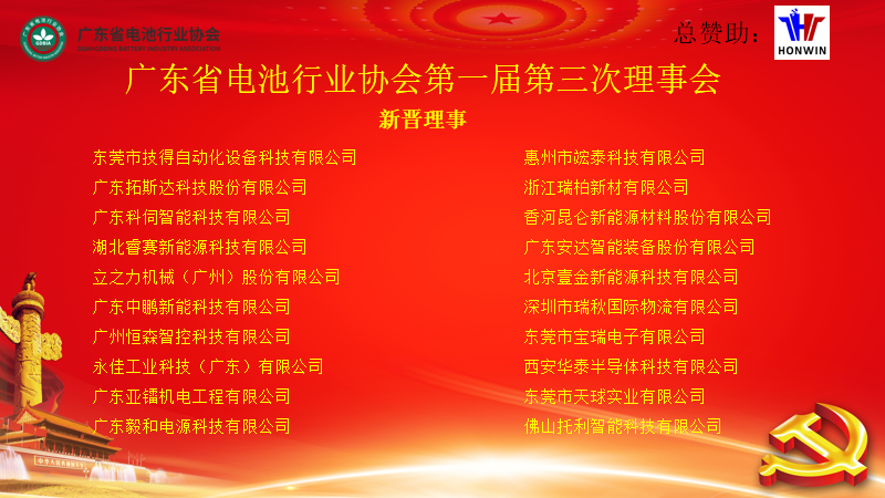 全體理事同意東莞市技得自動(dòng)化設備科技有限公司等39家企業(yè)成為廣東省電池行業(yè)協(xié)會(huì )理事單位。