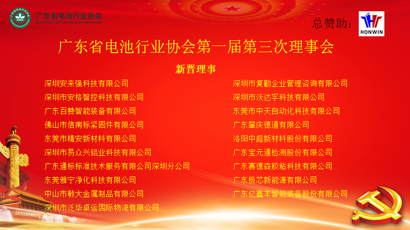 全體理事同意深圳市豪鵬科技股份有限公司成為廣東省電池行業(yè)協(xié)會(huì )名譽(yù)會(huì )長(cháng)單位。