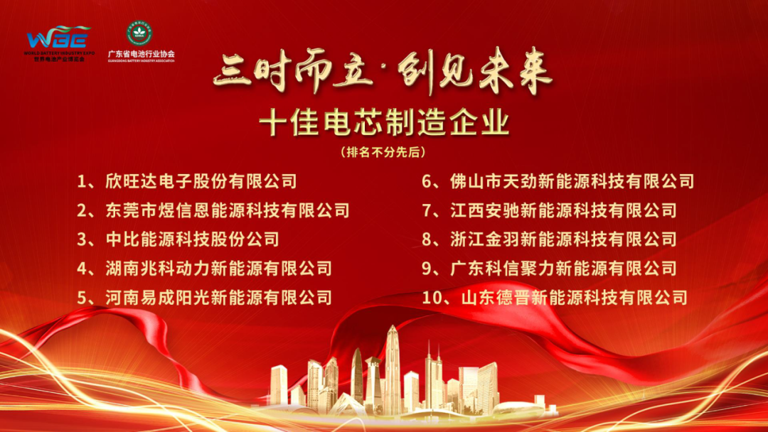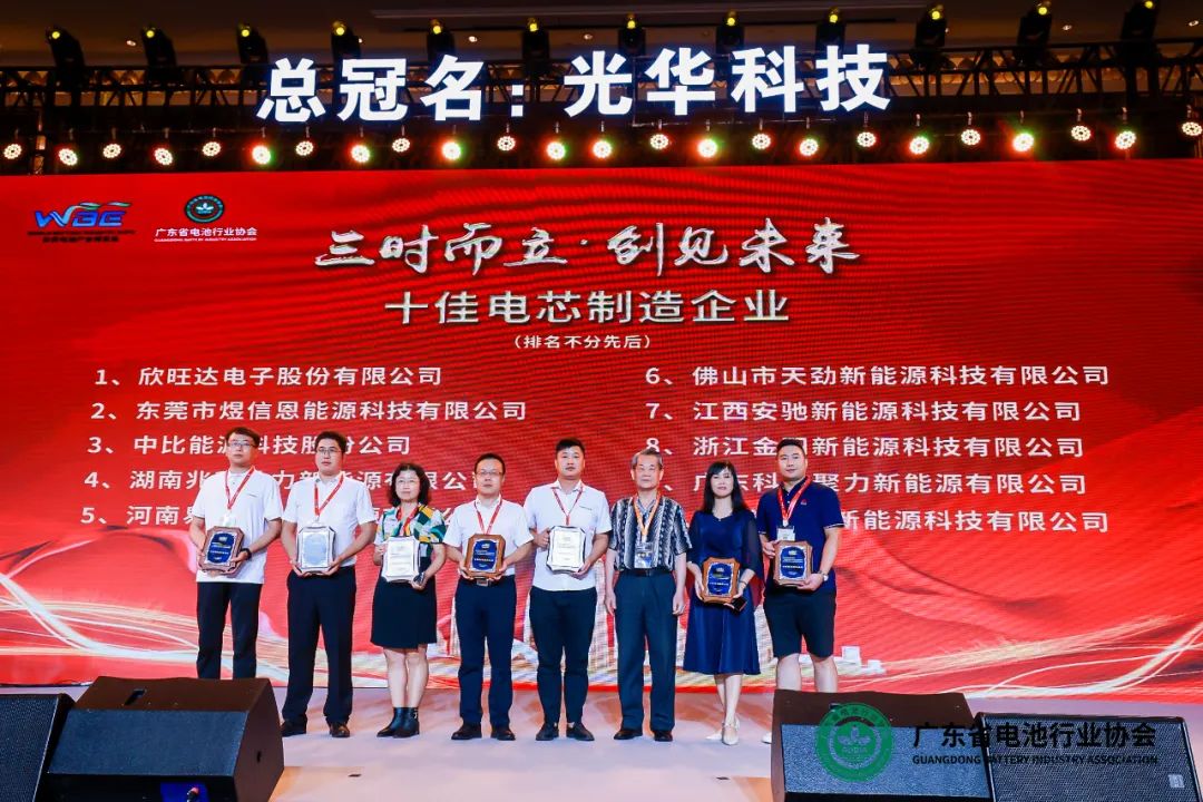 欣旺達、佛山天勁、德晉新能源等10家企業(yè)被評為世界電池產(chǎn)業(yè)博覽會(huì )十佳電池制造企業(yè);路華集團董事長(cháng)陳步霄為十佳電芯制造企業(yè)頒獎。