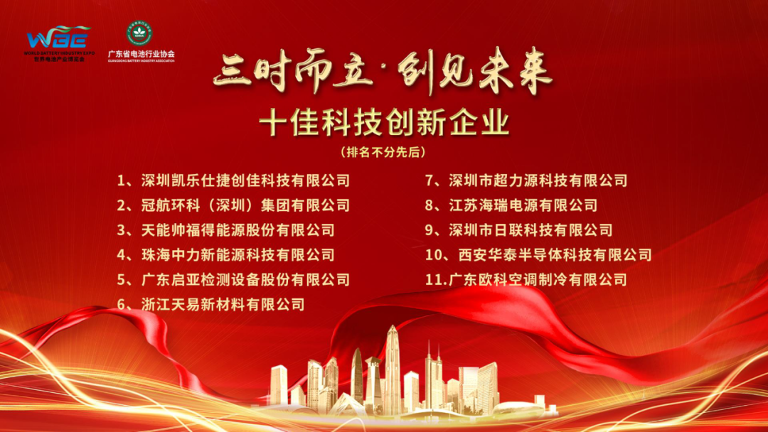 啟亞檢測、天易新材、歐科空調等企業(yè)被評為世界電池產(chǎn)業(yè)博覽會(huì )十佳科技創(chuàng )新企業(yè);廣州碩信展覽有限公司總經(jīng)理曹成為十佳科技創(chuàng )新企業(yè)頒獎。