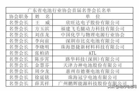 附件6:廣東省電池行業(yè)協(xié)會(huì )首屆副會(huì )長(cháng)名單