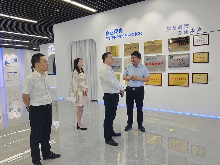 在遲同勝董事長(cháng)的陪同下,唐長(cháng)江秘書(shū)長(cháng)一行參觀(guān)了德晉新能源的展廳、電芯車(chē)間、儲能柜及PACK車(chē)間。