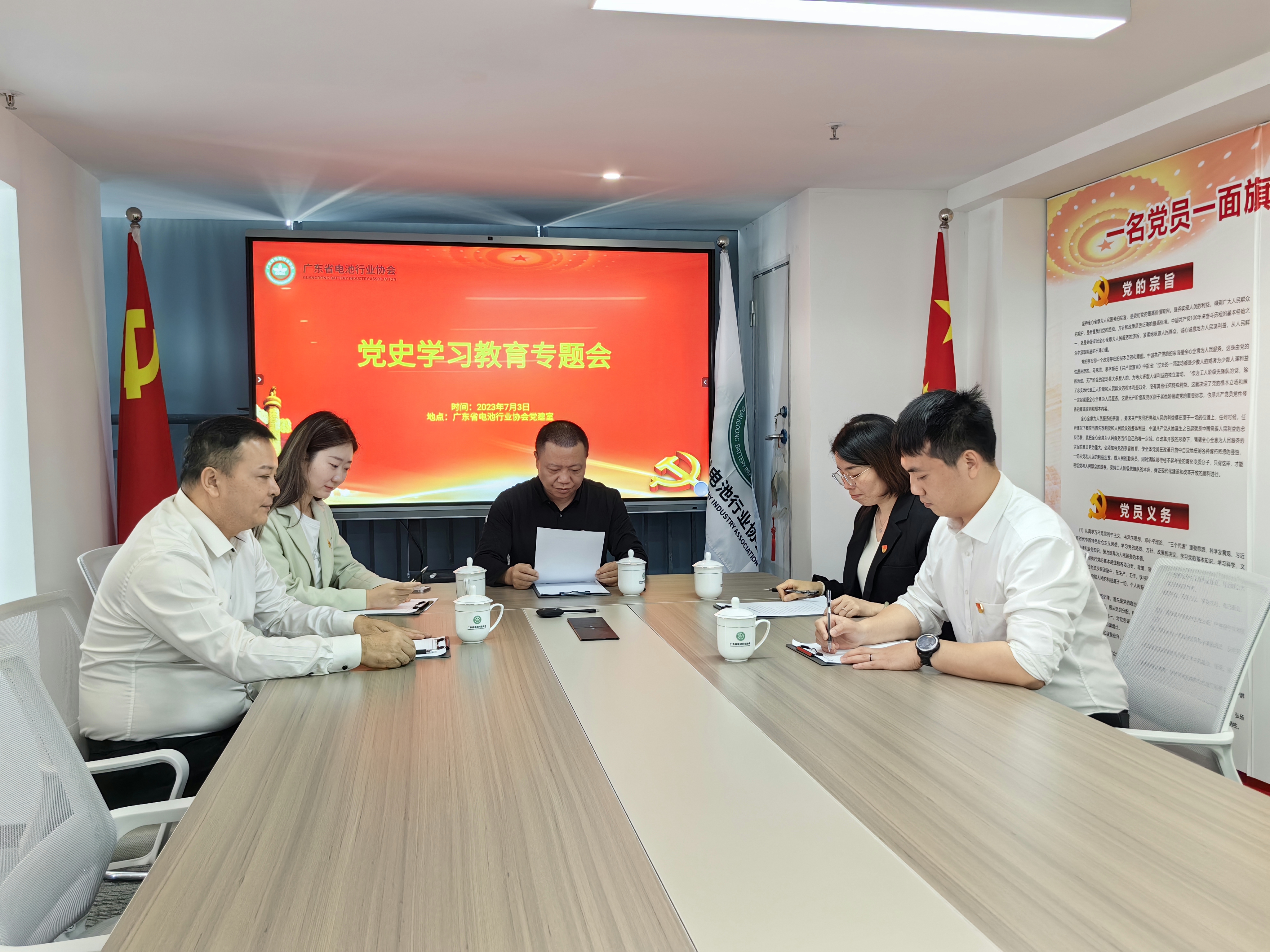 7月3日,廣東省電池行業(yè)協(xié)會(huì )黨支部召開(kāi)“黨史學(xué)習教育專(zhuān)題會(huì )”。廣東省電池行業(yè)協(xié)會(huì )黨支部書(shū)記曾洪華主持會(huì )議,協(xié)會(huì )秘書(shū)長(cháng)唐長(cháng)江和全體黨員同志參加會(huì )議。