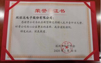 1月30日,欣旺達電子股份有限公司通過(guò)深圳市紅十字會(huì )向湖北等疫情重災區捐贈1000萬(wàn)元現金,專(zhuān)項用于一線(xiàn)抗擊和防治新型冠狀病毒疫情工作,為一線(xiàn)醫護人員、公眾尤其是湖北等疫情重災區人們提供力所能及的幫助。
