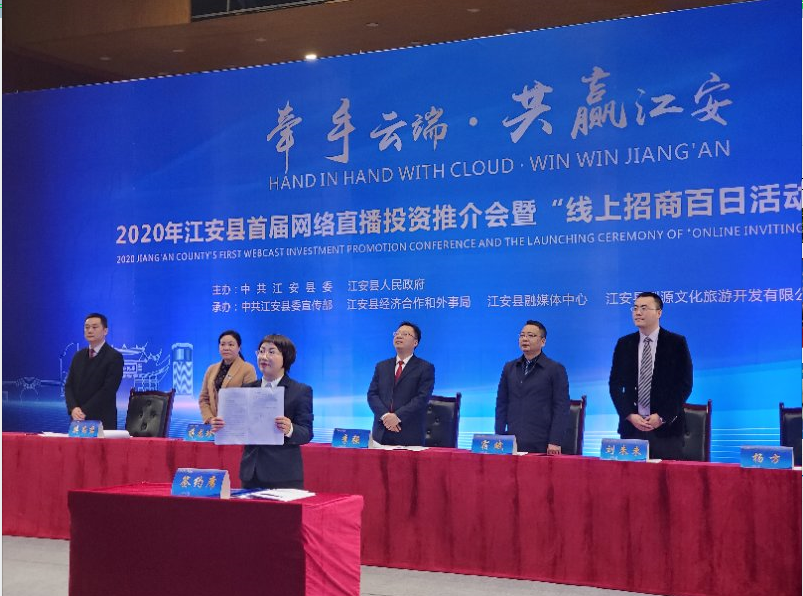 3月11日,“牽手云端·共贏(yíng)江安”2020年江安縣首屆網(wǎng)絡(luò )直播投資推介會(huì )暨“線(xiàn)上招商百日活動(dòng)”啟動(dòng)儀式的成功舉行,正式打響了江安縣今年平臺招商的“發(fā)令槍”。