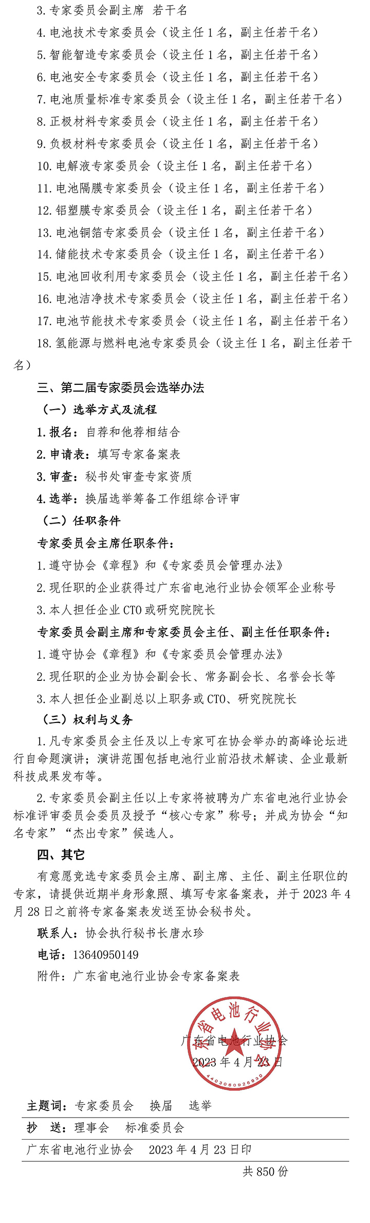 4.電池技術(shù)專(zhuān)家委員會(huì )(設主任 1 名,副主任若干名)
