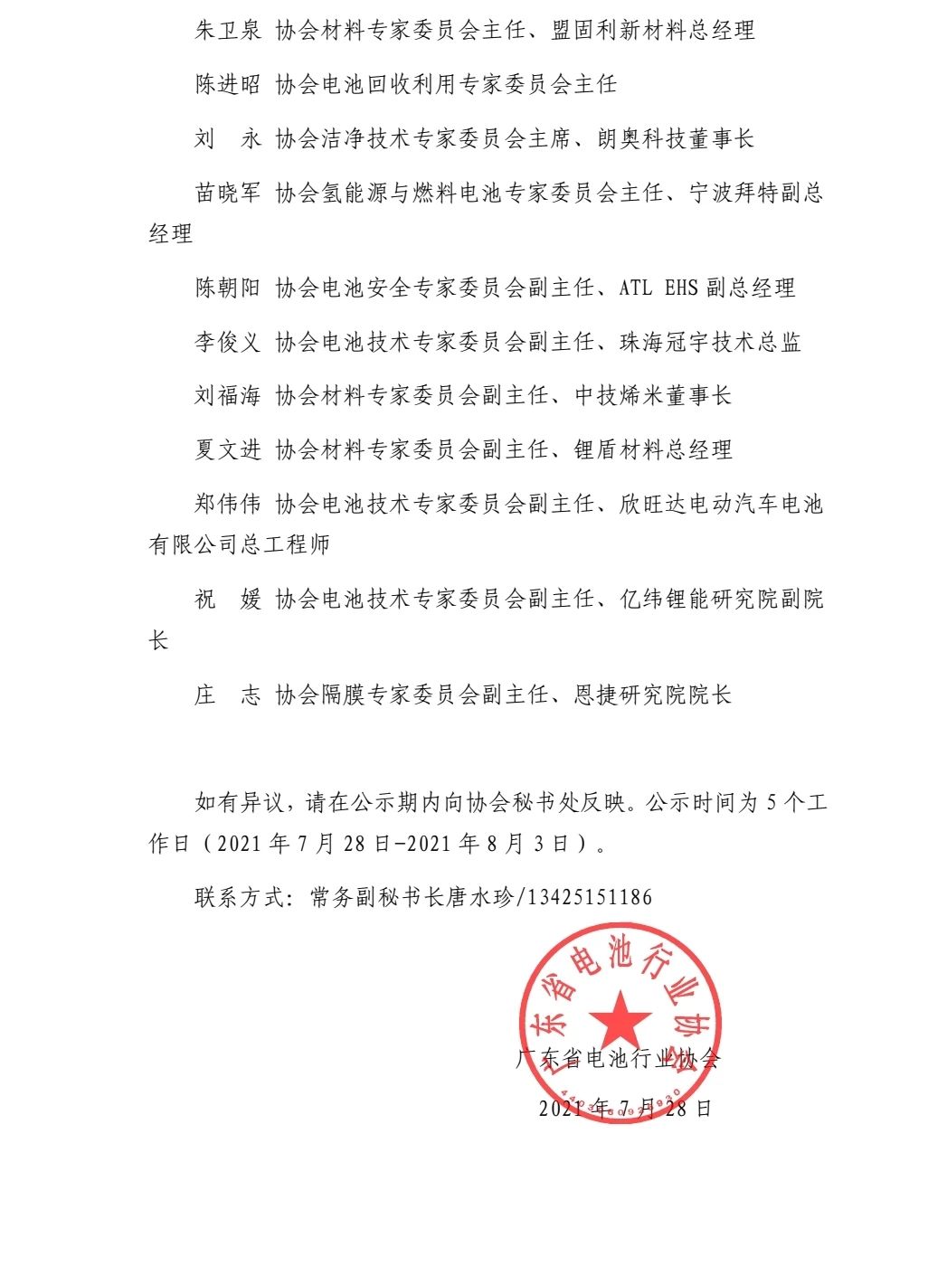 現將“廣東省電池行業(yè)協(xié)會(huì )2019-2020年度杰出專(zhuān)家”(擬)名單公示如下:
