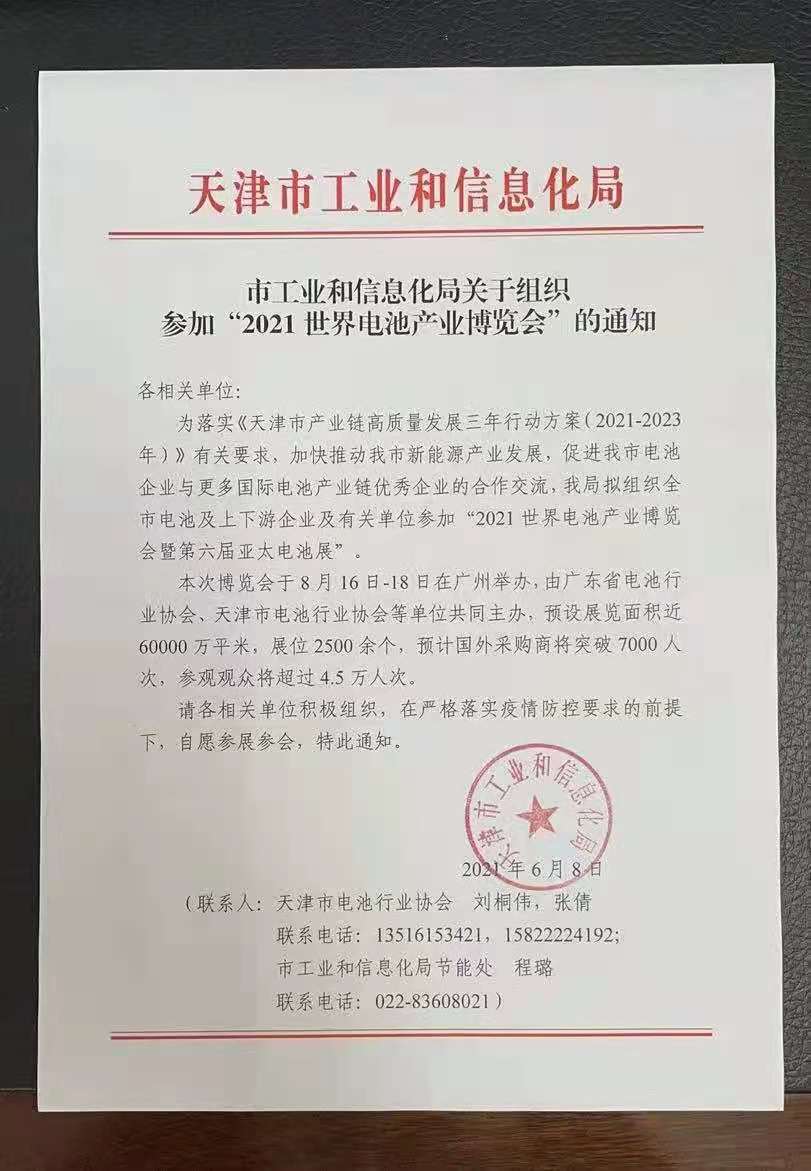 從政府角度來(lái)看,有廣東省工業(yè)和信息化廳、天津市工業(yè)和信息化局作為展覽會(huì )指導單位,天津市工業(yè)和信息化局還發(fā)文組織天津市電池產(chǎn)業(yè)鏈企業(yè)參加“2021世界電池產(chǎn)業(yè)博覽會(huì )”。